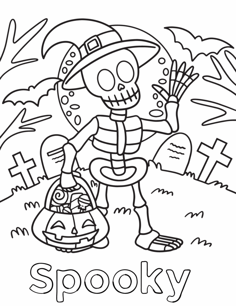Skeleton Coloring Pages from Coloring Maker are perfect for a quick, no-prep option. Moms will love how easy these are to print and hand over to keep kids busy. Kids will have fun coloring spooky skeletons in their own creative style.