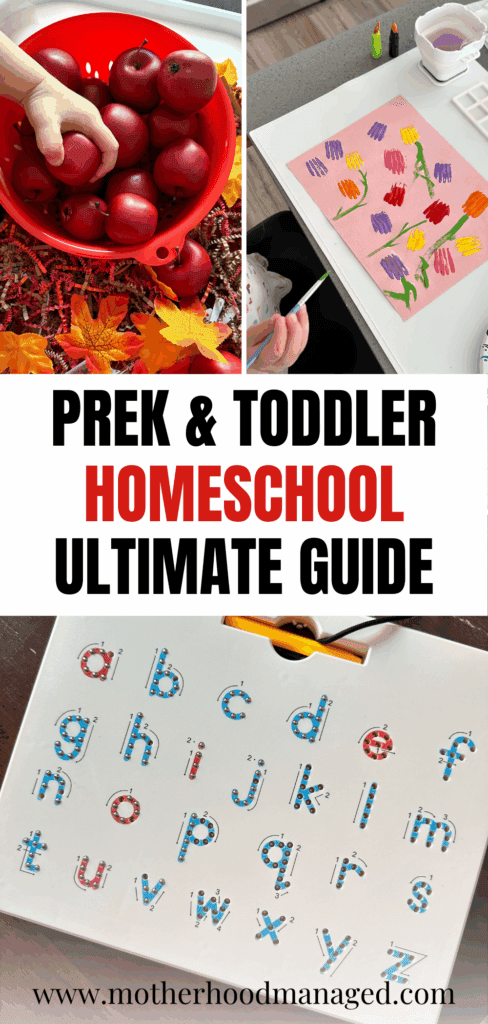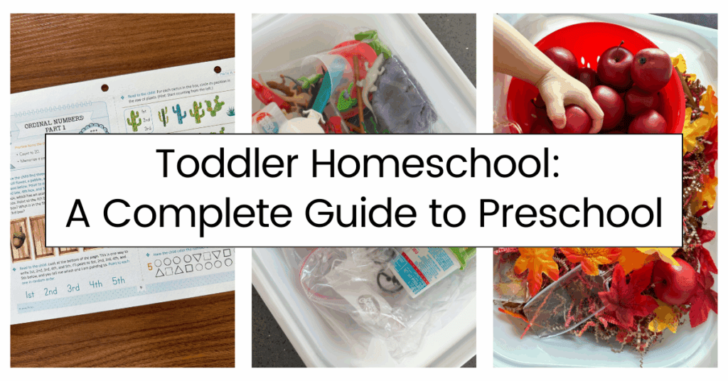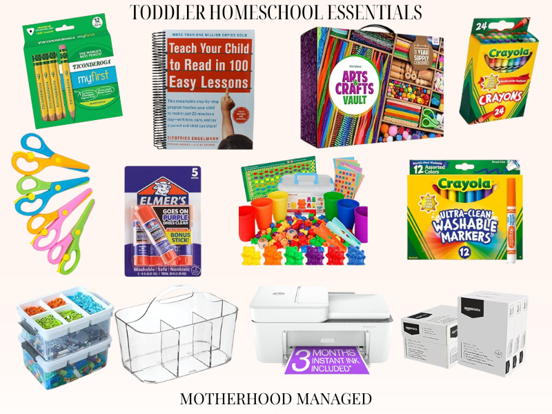 I’ve linked all my favorite homeschool supplies for my toddler HERE. To get you started, here are some ideas of the basics you might want to have on hand: